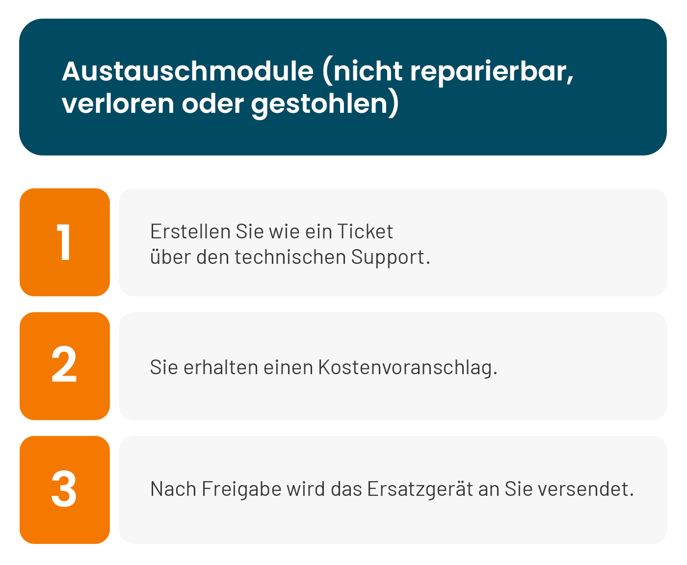 Folgen Sie diesem Prozess, wenn ein bestimmtes Übertragungsmodul verloren gegangen ist, gestohlen oder irreparabel beschädigt wurde (z.B. Wasserschaden)..: