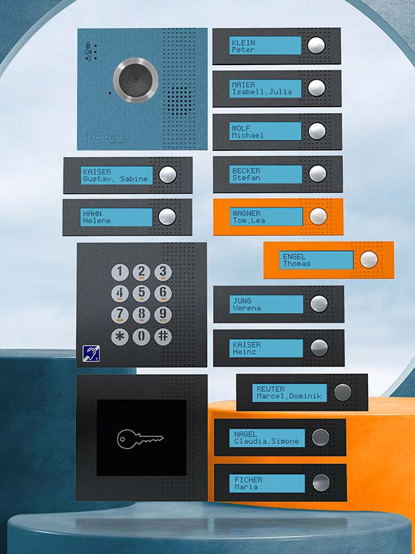 • Kombinierbar mit Kamera-, Namensschild-, Transponder-Modul und Code-Tastatur nach Bedarf