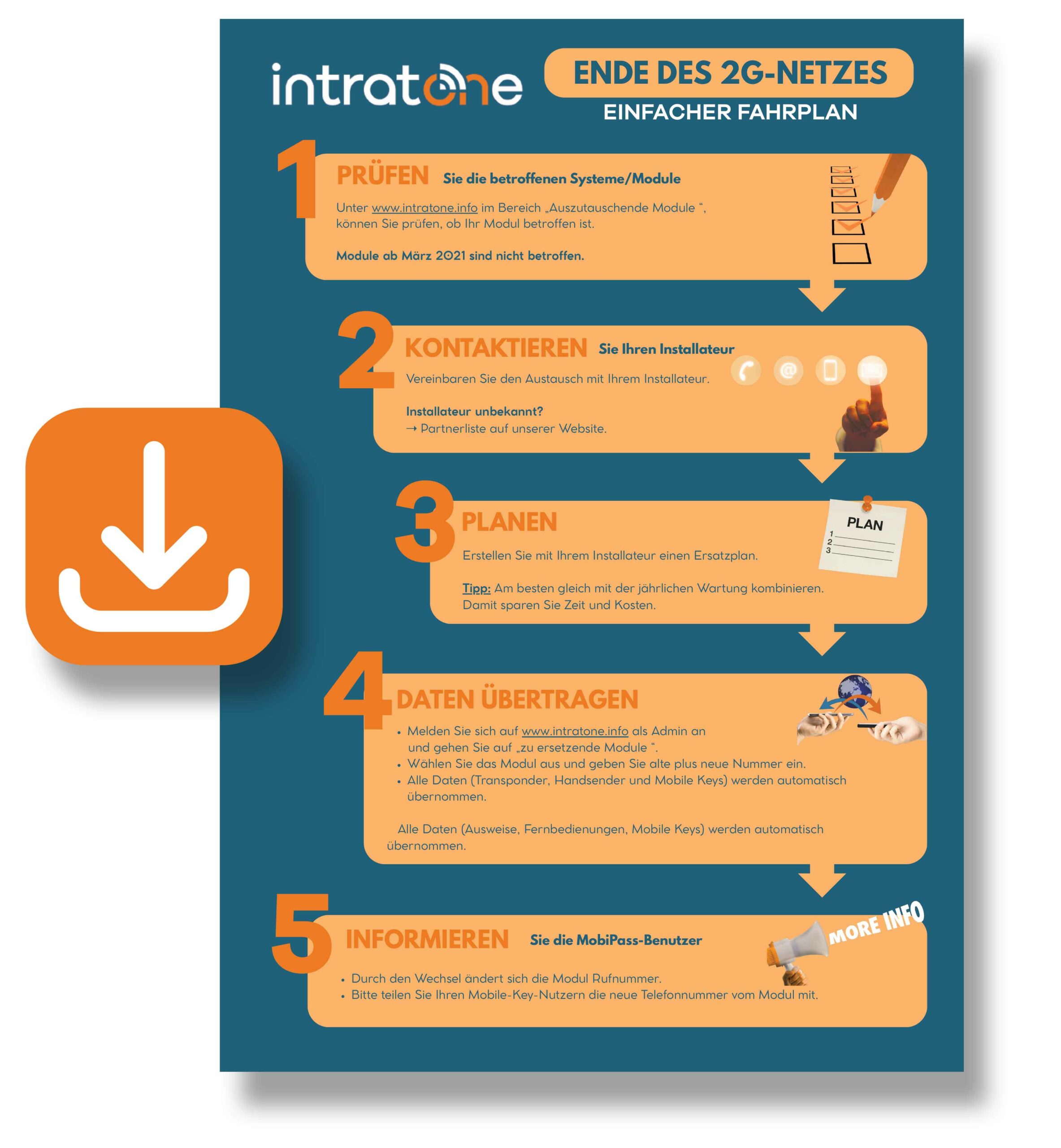 Intratone stellt umfassende Informationen und Unterstützung bereit – bitte beachten Sie, dass kein physischer Austauschservice angeboten wird. Auf unserem 2G-Informationsflyer finden Sie einen klaren Stufenplan, sowie Antworten auf häufig gestellte Fragen.